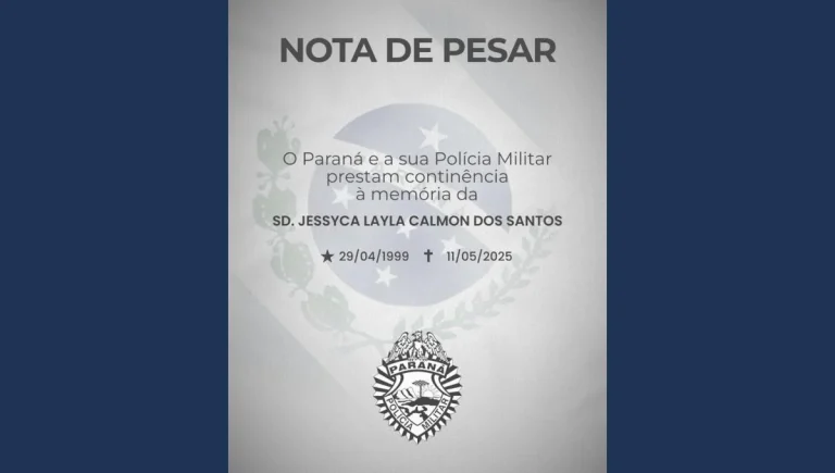 A Polícia Militar do Paraná lamenta profundamente a morte da soldado Jéssyca Layla Calmon dos Santos, de 26 anos, ocorrida na madrugada de domingo (11), em um trágico acidente de