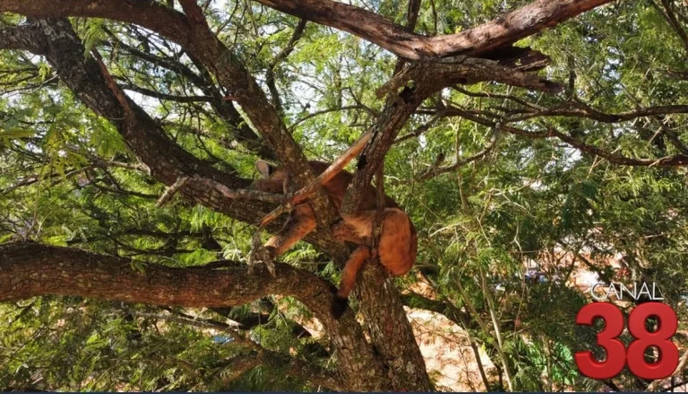 Biólogo Felippe, Repórter Selvagem do Canal 38, Avalia Onça-Parda em Árvore de Fazenda