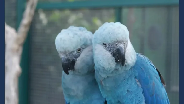 Há 334 dessas aves no mundo sob cuidados e 85 estão no Brasil As ararinhas-azuis, aves ameaçadas de extinção de acordo com a Lista Vermelha da União Internacional para a