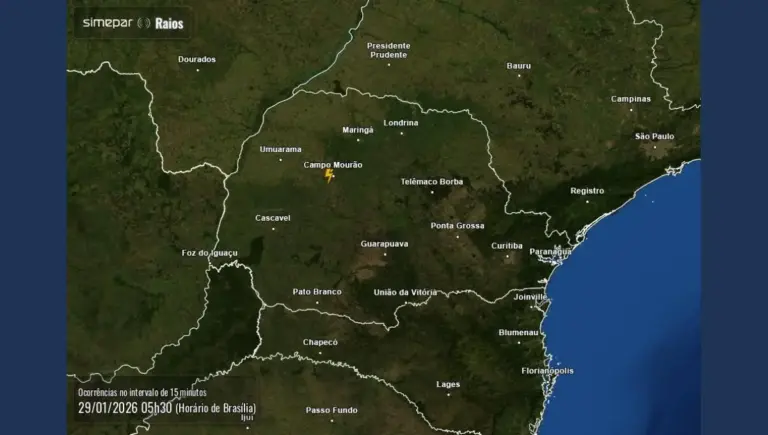 O tempo segue com características típicas de verão no Paraná. O dia começa com maior predomínio de sol na metade oeste, enquanto na metade leste há maior cobertura de nuvens