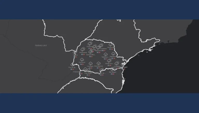 O mês de julho começa sem mudanças nas condições do tempo no Paraná, ou seja, as condições meteorológicas seguem favoráveis para chuvas fracas e isoladas entre os Campos Gerais, Norte