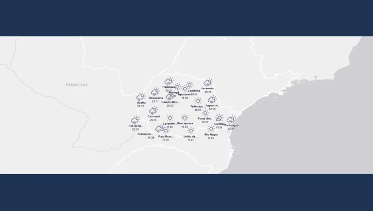 Neste sábado, as temperaturas voltam a subir, especialmente no noroeste do Paraná, onde a tarde será mais quente. Pela manhã, esperamos temperaturas amenas em todo o estado, especialmente no sul