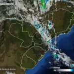 Durante o domingo, a área de baixa pressão se afasta em direção ao oceano, na altura do litoral uruguaio, mas segue mantendo os índices de instabilidade elevados no Paraná. Permanece