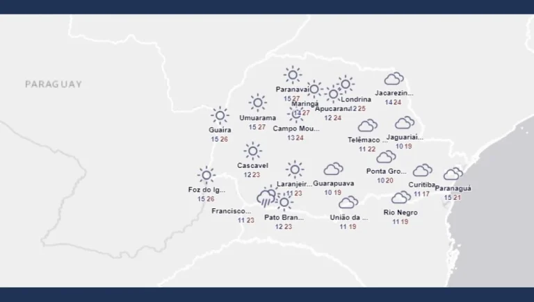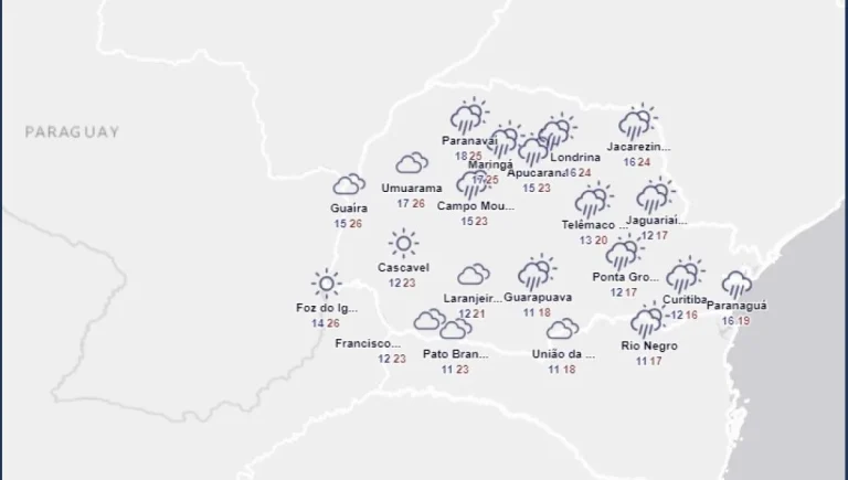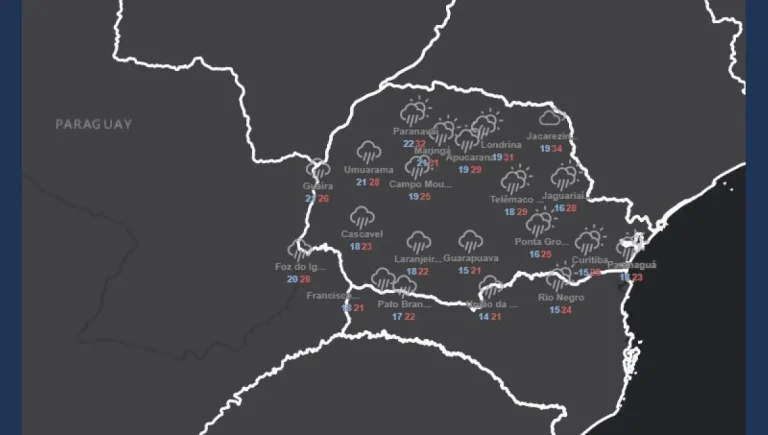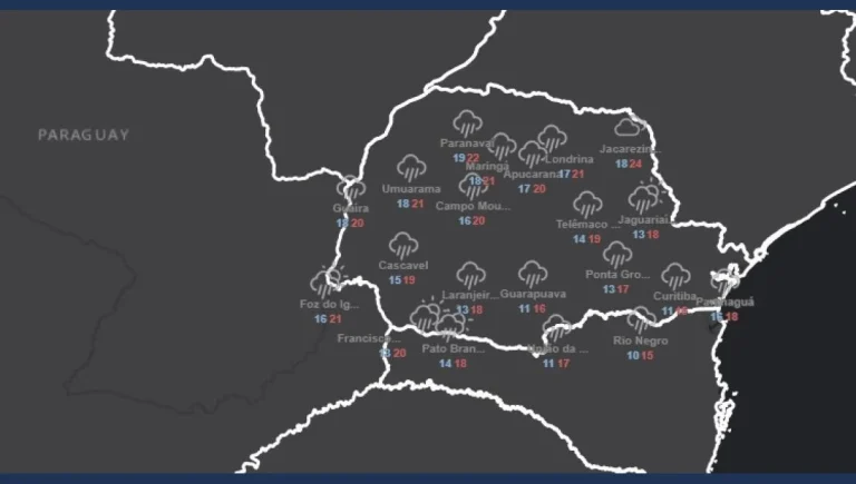 Na sexta-feira teremos o rápido avanço de uma frente fria pelo Sul do Brasil. Nesta condição o risco de tempestades (chuvas, descargas atmosféricas e ventos fortes) aumenta bastante. Entre o