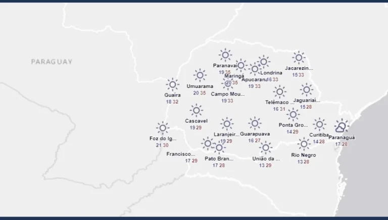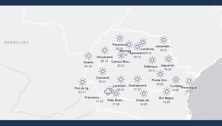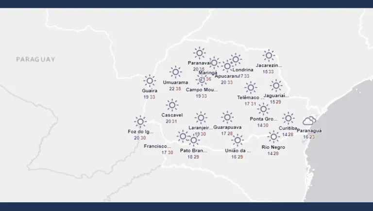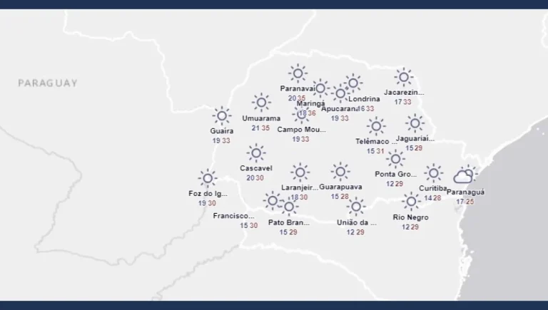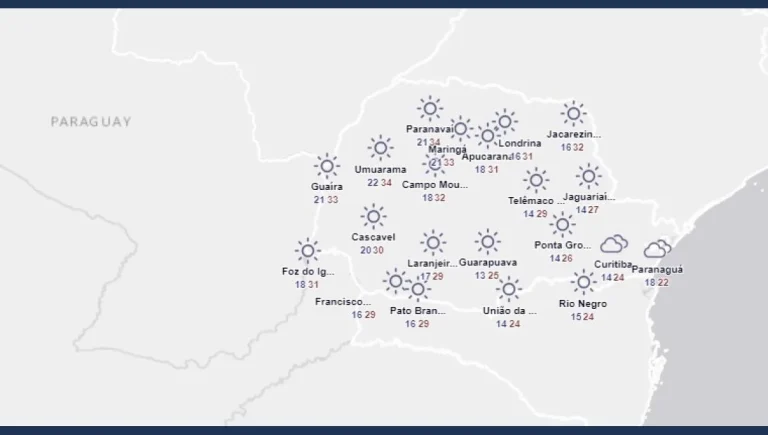 O domingo segue sem mudanças nas condições do tempo no Paraná. A massa de ar quente presente sobre o estado, mantém o tempo estável com o sol predominando, temperaturas elevadas