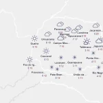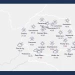 Neste sábado, uma massa de ar frio e seco avança sobre o Paraná. Devido às condições de forte declínio das temperaturas, são previstas geadas ao amanhecer. Mesmo em porções mais