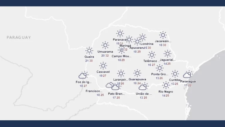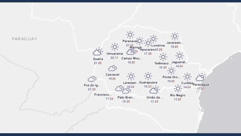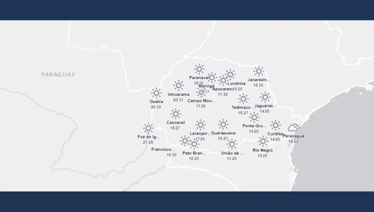 Segunda-feira com estabilidade no Paraná, sol na maioria dos setores e temperaturas baixas pela manhã. A massa de ar frio e seco, ainda presente sobre o Sul do Brasil, segue