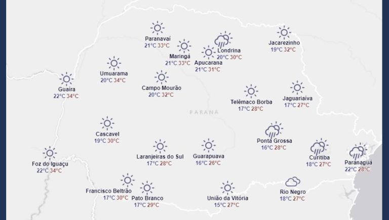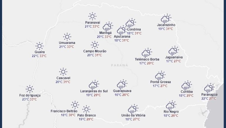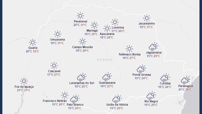 Confira a previsão do tempo do simepar para Apucarana e região