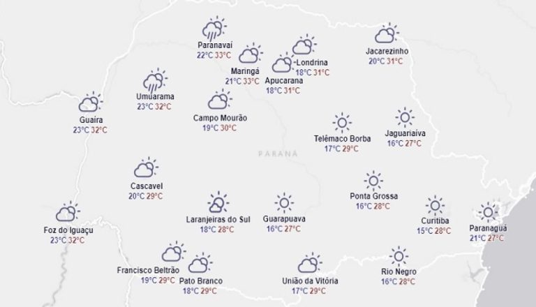 Confira a previsão do tempo do simepar para Apucarana e região