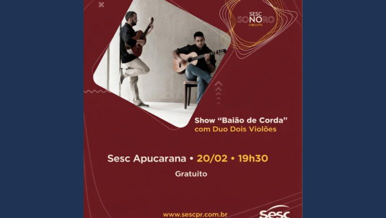 O público de Apucarana terá a oportunidade de apreciar um espetáculo musical diferenciado nesta sexta-feira, dia 20, no Sesc Apucarana. A partir das 19h30, o espaço recebe o show “Baião