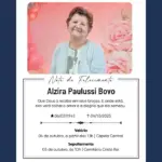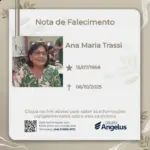 Faleceu nesta segunda-feira (06), em Apucarana, Ana Maria Trassi, aos 67 anos. O velório acontece na Capela Mortuária Central de Apucarana, onde familiares e amigos prestam suas últimas homenagens. O