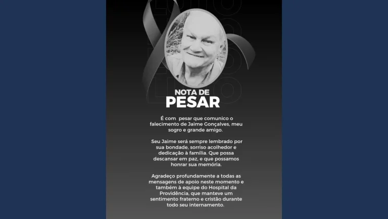 É com profundo pesar que comunico o falecimento de Jaime Gonçalves, meu sogro e grande amigo, aos 77 anos. O velório ocorre a Capela Mortuária de Apucarana. O sepultamento será