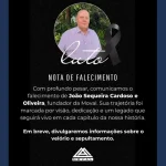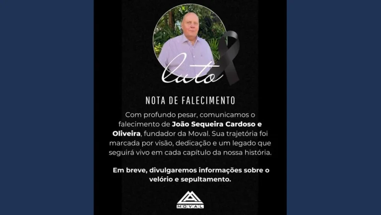 Faleceu em Arapongas, o empresário João Sequeira Cardoso e Oliveira, fundador da tradicional empresa de móveis Moval. A notícia do falecimento foi confirmada e divulgada nas primeiras horas da manhã