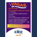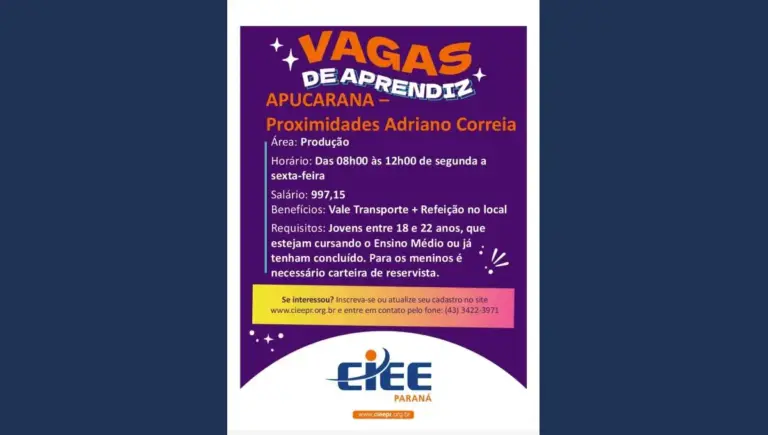 O Centro de Integração Empresa-Escola (CIEE Paraná) anunciou novas oportunidades de aprendizagem na cidade de Apucarana, destinadas a jovens que desejam ingressar no mercado de trabalho e adquirir experiência profissional.