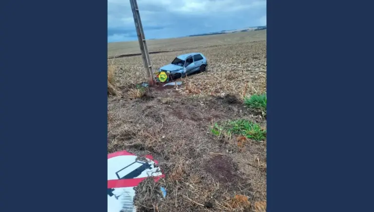 Carro furtado se envolve em acidente e condutor foge na PR-090 em Sertanópolis