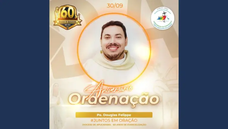 Nesta terça-feira, 30 de setembro, a Diocese de Apucarana celebra com alegria o aniversário de ordenação sacerdotal do Pe. Douglas Felippe. São 8 anos de vida consagrada a Deus. A