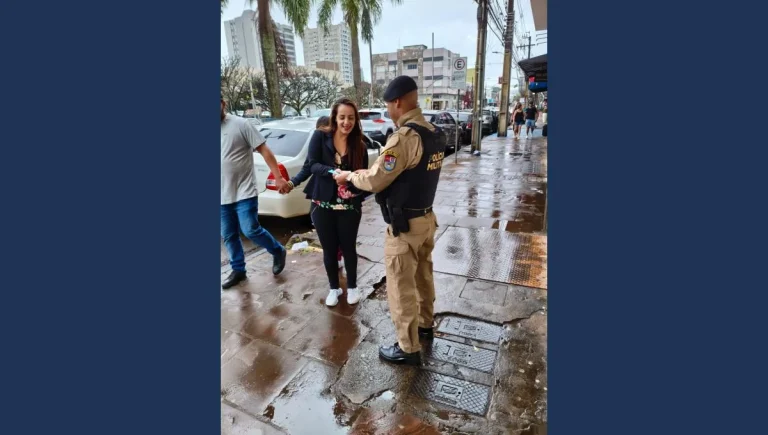 Na tarde deste sábado (10), a equipe da Patrulha Maria da Penha da 7ª Companhia Independente da Polícia Militar realizou uma importante ação preventiva na Avenida Arapongas, no centro da