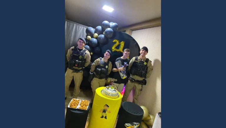 No último sábado (12), policiais do 10º Batalhão da Polícia Militar participaram de uma comemoração especial em Apucarana: o aniversário de 21 anos de Felipe, um jovem autista apaixonado pela