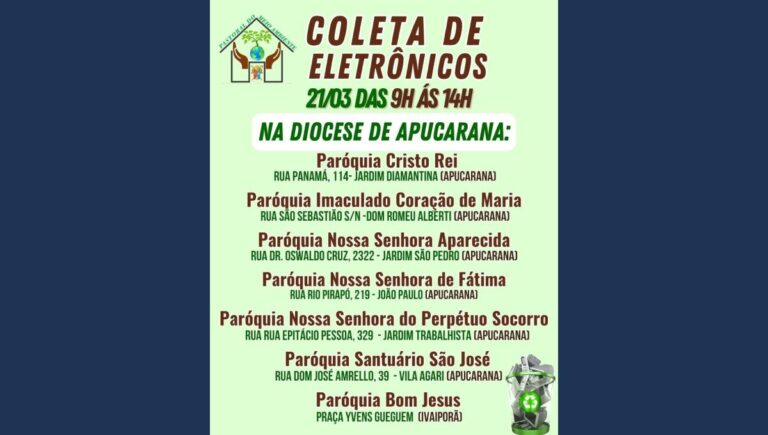Paróquias da Diocese de Apucarana realizam coleta de eletrônicos e óleo de cozinha neste sábado