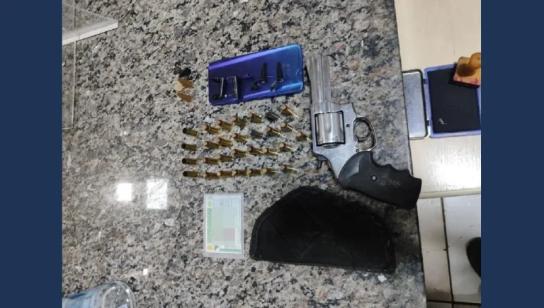 Um homem de 37 anos foi preso na noite de domingo (23), após disparar uma arma de fogo em frente à sua residência na Avenida Mato Grosso, no Jardim Ponta