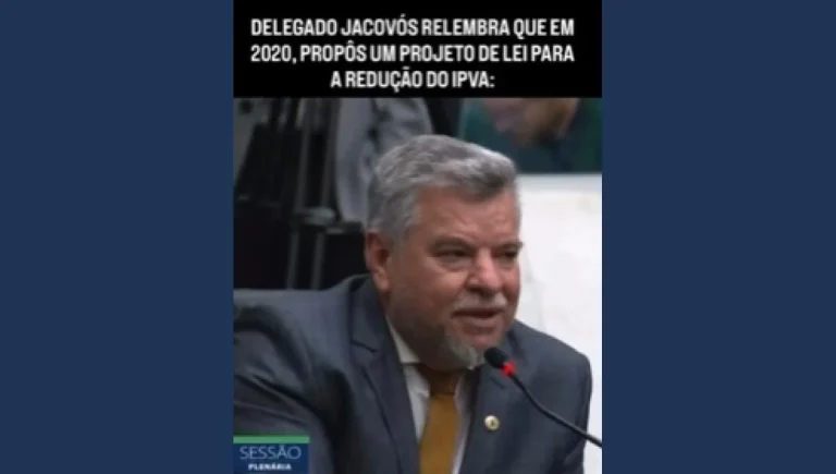 O deputado estadual Delegado Jacovós utilizou suas redes sociais para comentar a proposta de redução do IPVA apresentada pelo governador do Paraná. Ele lembrou que, em 2020, protocolou um projeto