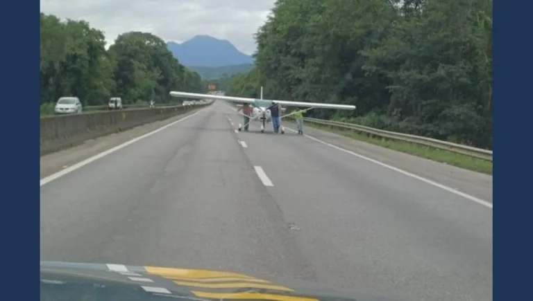 Avião monomotor faz pouso forçado na BR-101 em SC e assusta motoristas; ninguém ficou ferido