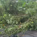 Árvore de grande porte cai e interdita via de acesso ao Parque Ecológico da Raposa em Apucarana