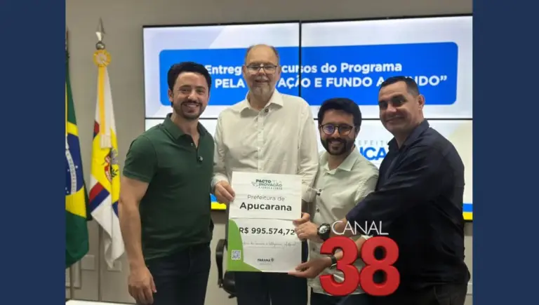 Nesta sexta-feira (16), o município de Apucarana foi contemplado com um importante recurso financeiro por meio do programa Pacto pela Inovação & Fundo a Fundo, do Governo do Estado do