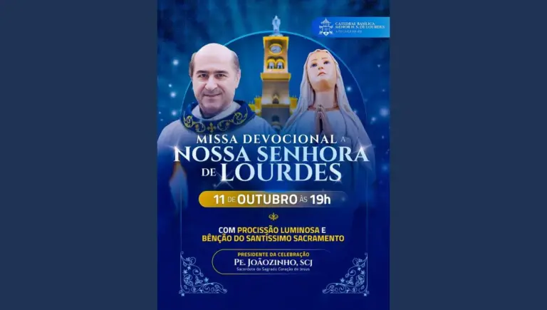 A Catedral Basílica Menor Nossa Senhora de Lourdes realiza neste sábado (11), a partir das 19h, mais uma edição da tradicional Missa Devocional a Nossa Senhora de Lourdes, em honra