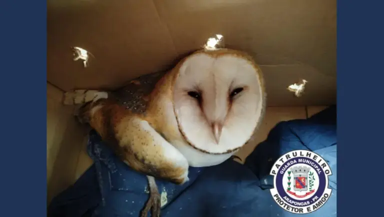 Na manhã deste sábado (8), por volta das 11h24, a Guarda Municipal de Arapongas recebeu a entrega de uma coruja Suindara (Tyto furcata) encontrada ferida às margens da Rodovia PR-444,