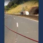 Acidente interdita BR-376 após caminhão tombar e incendiar, motorista é resgatado