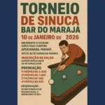 Os amantes da sinuca têm um compromisso marcado neste sábado, 10 de janeiro de 2026, em Apucarana. O Bar do Marajá promove um grande torneio de sinuca, que promete reunir