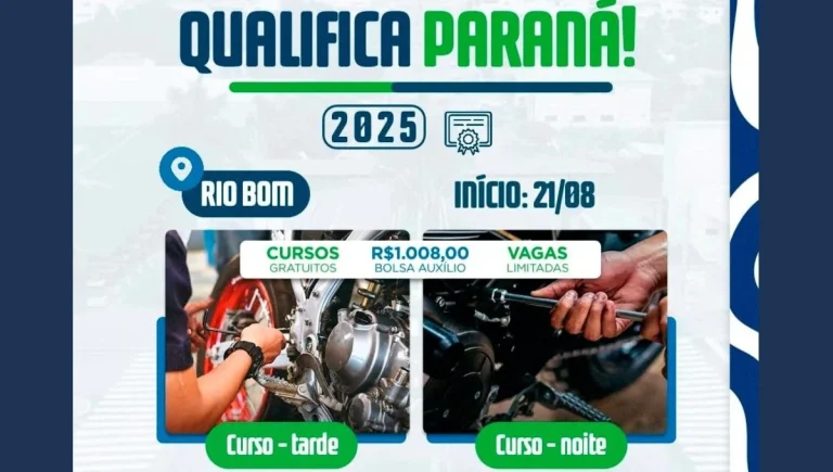 A Prefeitura de Rio Bom, em parceria com o Governo do Estado do Paraná, por meio da Secretaria de Estado do Trabalho, Qualificação e Renda, anuncia a chegada de mais