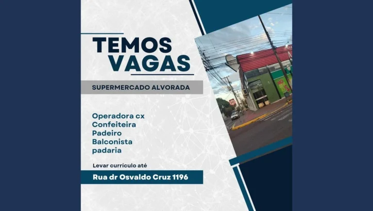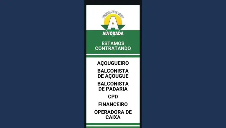 O Supermercados Alvorada anunciou novas oportunidades de trabalho em Apucarana. A rede está contratando profissionais para diferentes funções e convida interessados a se candidatarem. As vagas disponíveis são para açougueiro,