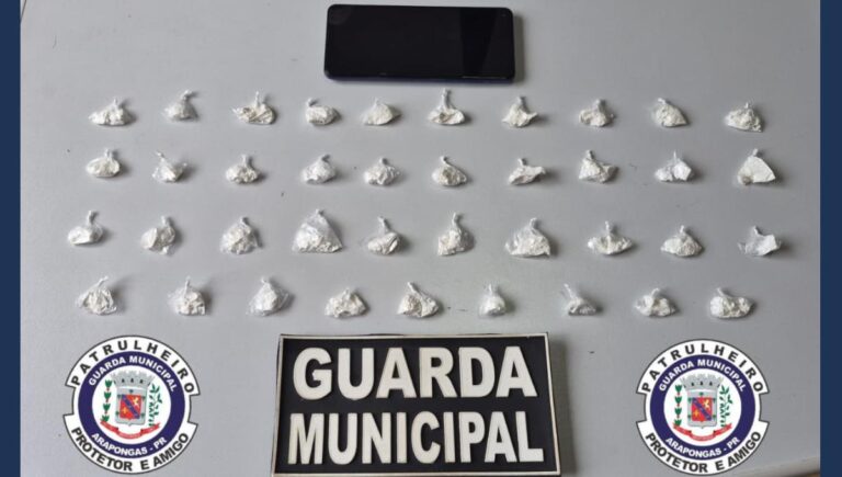 GUARDA MUNICIPAL APREENDE VEÍCULO E PRENDE SUSPEITO COM 39 PORÇÕES DE COCAÍNA EM ARAPONGAS