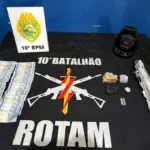 A tarde desta quinta-feira (04) registrou uma ação decisiva da Polícia Militar, por meio da equipe ROCAM do 5º BPM, que resultou na apreensão de drogas e diversos materiais ligados
