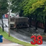 Carreta bi-trem faz “L” e bloqueia rua próxima à UPA neste domingo em Apucarana