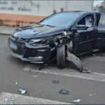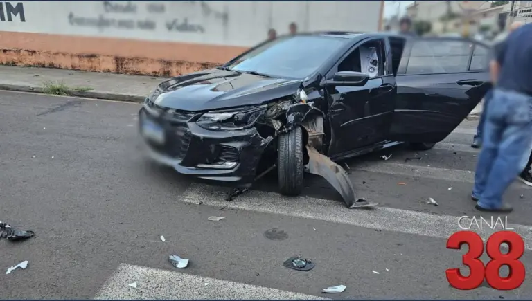 Colisão tripla na área central de Arapongas mobiliza PM e SAMU; duas pessoas precisaram de atendimento médico