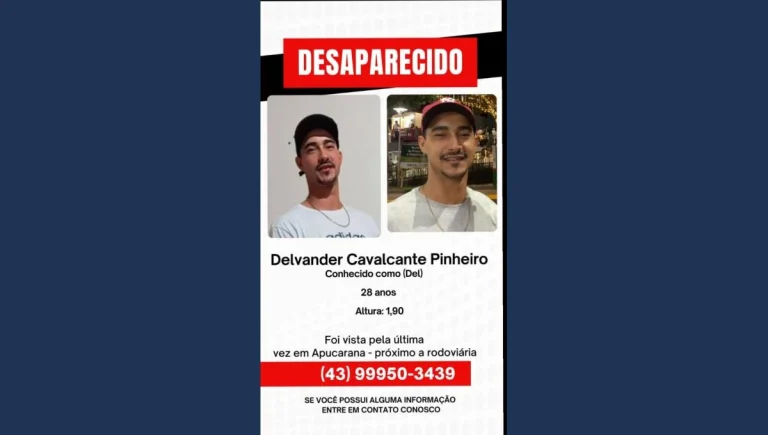 A família de Delvander Cavalcante Pinheiro, conhecido como Del, de 28 anos, busca informações sobre seu paradeiro após seu desaparecimento em Apucarana. Ele foi visto pela última vez nas proximidades