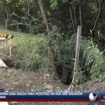 Moradores da Rua Alexandra, em frente ao Colégio Mater Dei, na área central da cidade, estão indignados com a falta de manutenção no local. A calçada, outrora movimentada por alunos