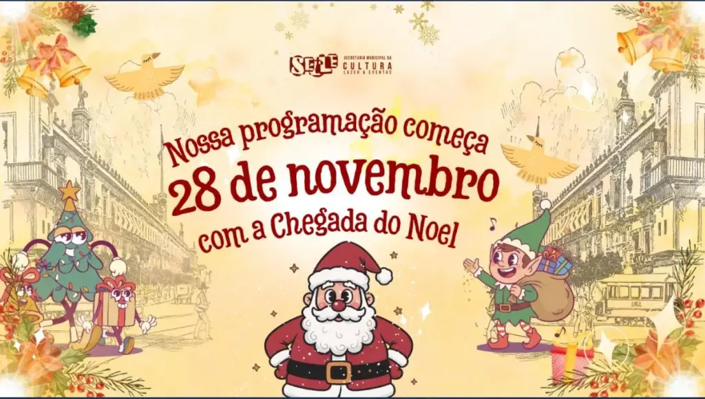 A Prefeitura de Arapongas, por meio da Secretaria Municipal de Cultura, Lazer e Eventos (SECLE), divulga a programação da chegada do Papai Noel, que vai ocorrer nesta sexta-feira, 28, a partir das 18h30, e também vai marcar o acender das luzes natalinas.