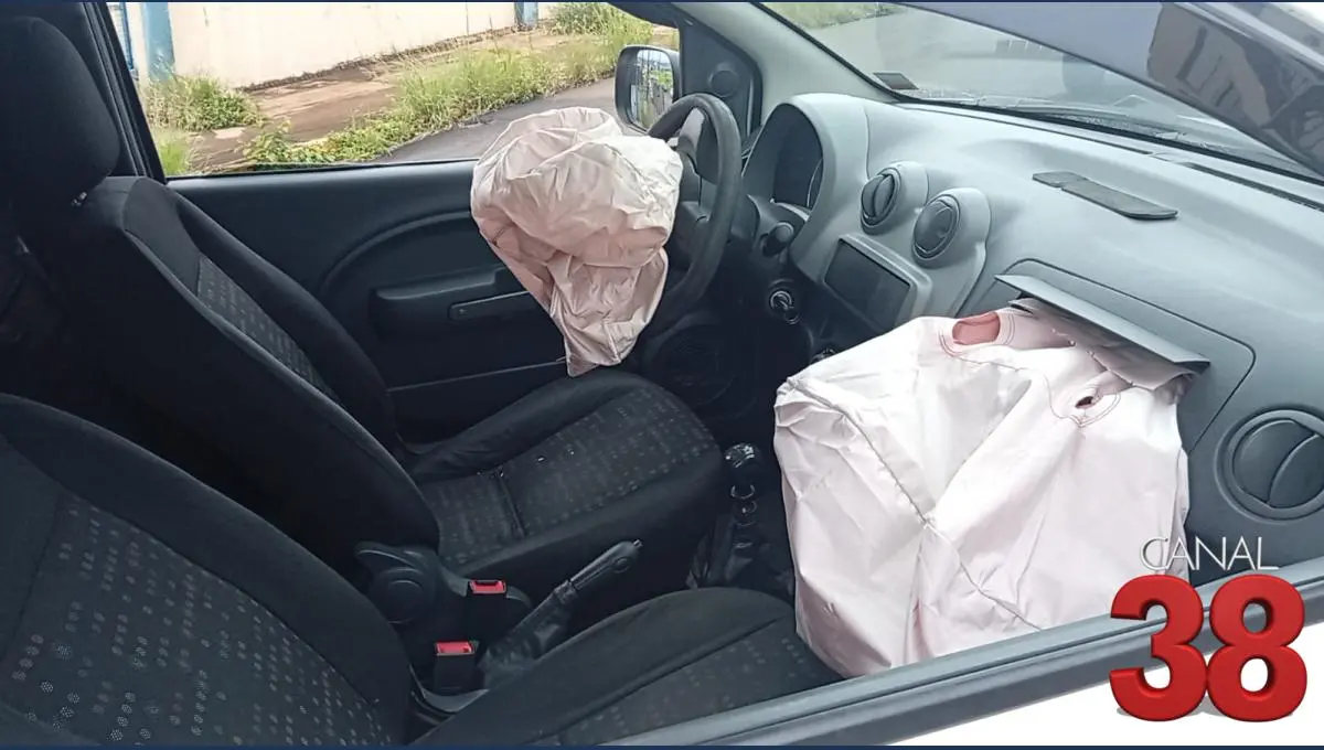 Com o impacto, o veículo ficou bastante danificado. O motorista sofreu contusão em um dos dedos da mão e escoriações na região do rosto, causadas pelo acionamento do airbag.
