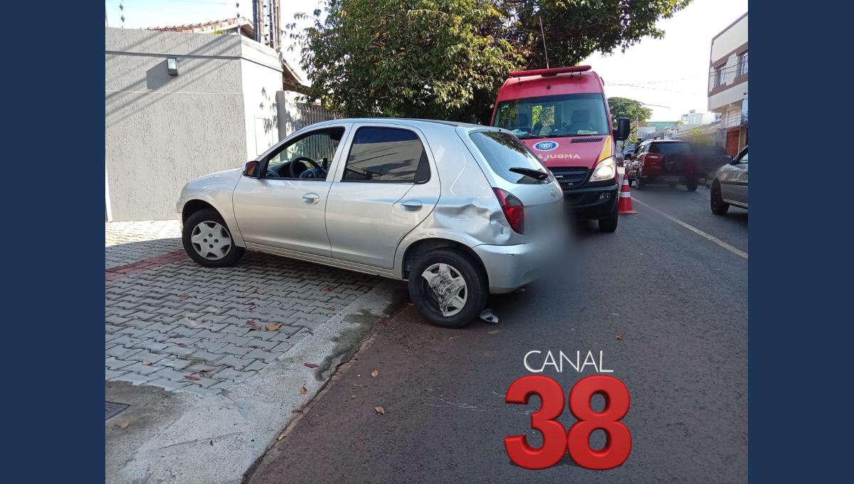 Uma colisão entre um carro e uma motocicleta foi registrada na manhã desta sexta-feira (20), por volta das 8h42, na Rua Talita Bresolin, em Apucarana.