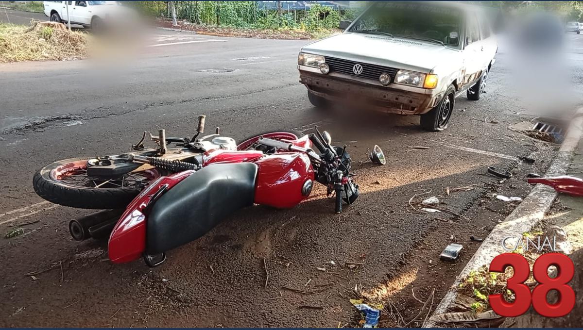 No final da tarde deste domingo (22), um acidente de trânsito mobilizou equipes de resgate na Apucarana. A colisão ocorreu na Avenida Aviação, esquina com a Rua Mário Mendes Marques, na Vila Nova, envolvendo um automóvel Voyage e uma motocicleta Honda CG 150.