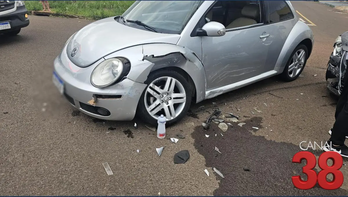 Uma colisão entre dois veículos foi registrada na tarde deste sábado (18) em Arapongas, no cruzamento das ruas Garça Vermelha e Tucaninho Verde.