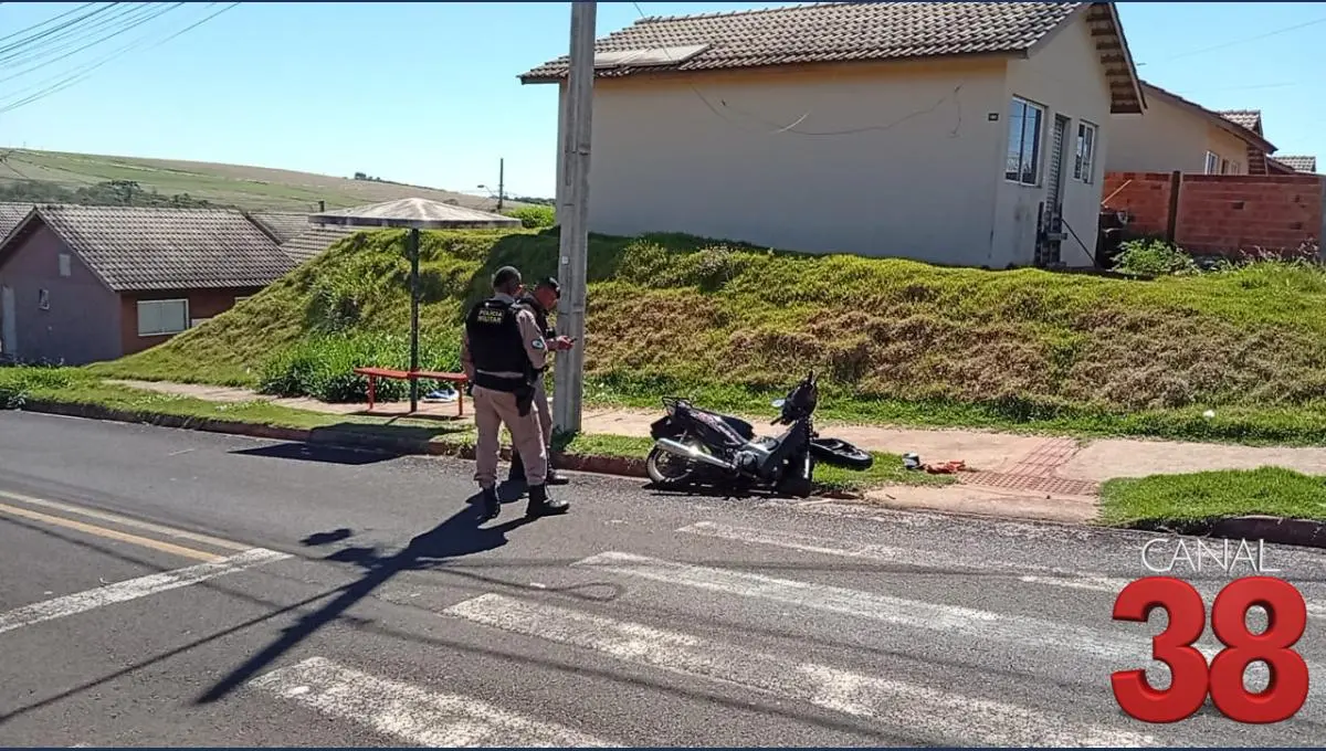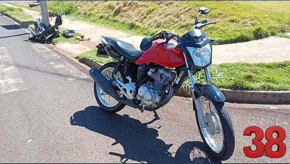 Uma colisão entre duas motocicletas deixou dois jovens feridos na manhã desta terça-feira (11) no cruzamento da Rua Dr. Francisco José Monte Lima com a Rua José Augusto Machado, no Solo Sagrado, em Apucarana.