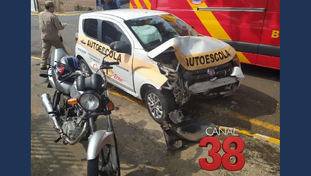 Na tarde desta quinta-feira (17), um acidente envolvendo um veículo de autoescola e uma motocicleta foi registrado em Apucarana.