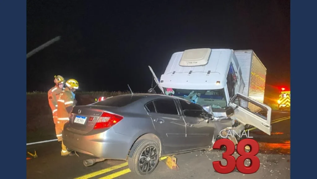 O acidente ocorreu em uma curva da estrada, quando o caminhão, que vinha de Guarapuava com destino a Londrina, colidiu com o automóvel.