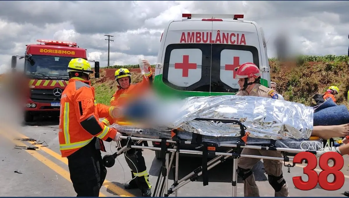 “Foi uma colisão de um carro e um caminhão com duas vítimas no veículo. O condutor da carreta saiu ileso, sem lesões, mas os ocupantes do HB20 ficaram encarcerados. O atendimento foi difícil, especialmente porque o motorista apresentava fratura de fêmur, exigindo extremo cuidado na retirada. É uma vítima considerada grave pela cinemática e pelas lesões, mas estava consciente. O médico já fez a regulação e ambos devem ser encaminhados para hospitais da região, conforme direcionamento da equipe médica”, afirmou Camilo.