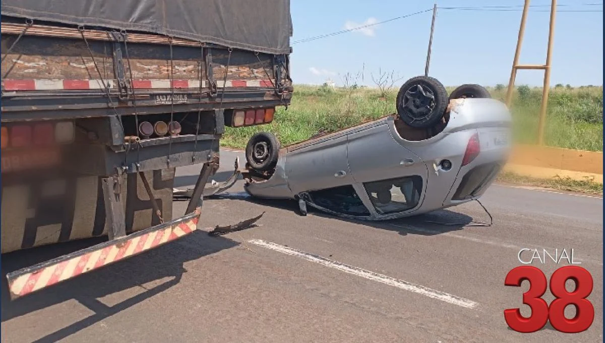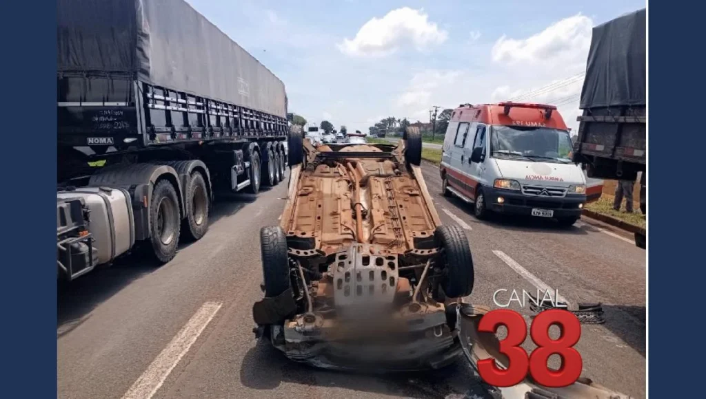 Na tarde desta sexta-feira (25), uma colisão envolvendo um carro e um caminhão foi registrada na BR-376, próximo à Eletran, antes da entrada da cidade de Apucarana. Segundo informações, o acidente aconteceu quando o carro colidiu na traseira do caminhão, resultando no capotamento do veículo de passeio.